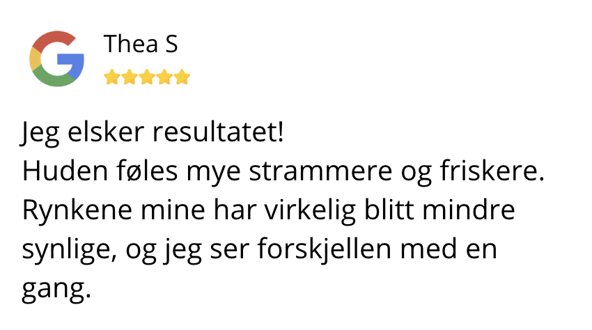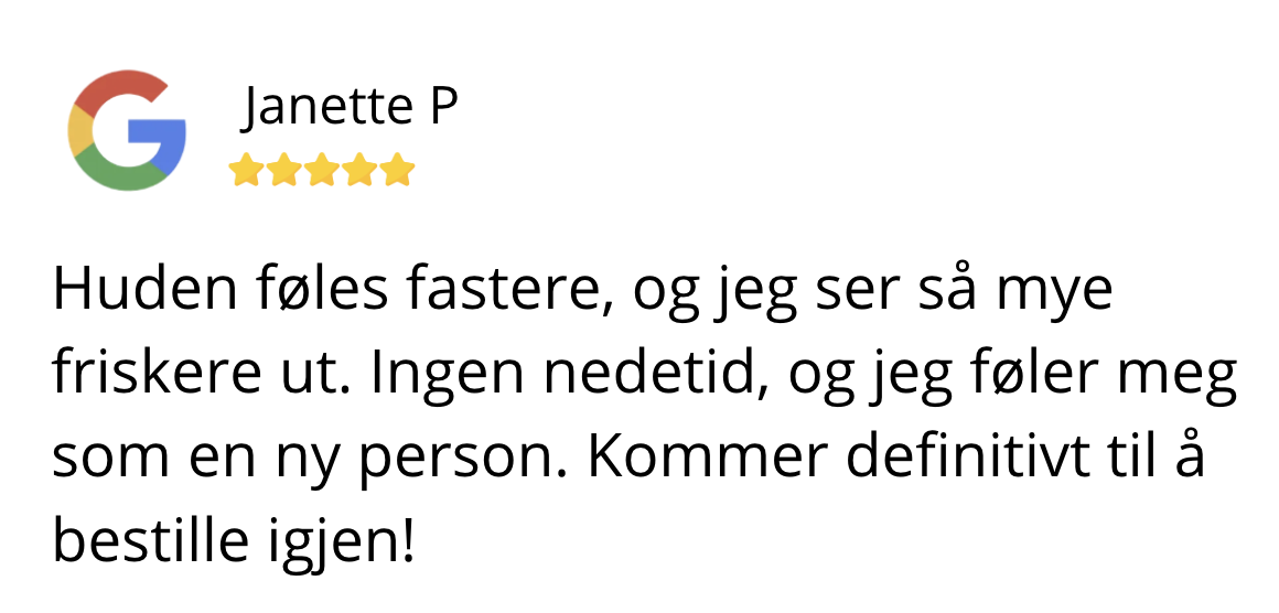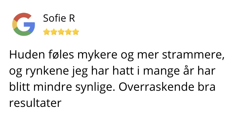 Behandlingen blir utført med mikrostrøm, ultralyd og LED-lysterapi, for å fremme cellefornyelse og øke din egen produksjon av kollagen og elastin.